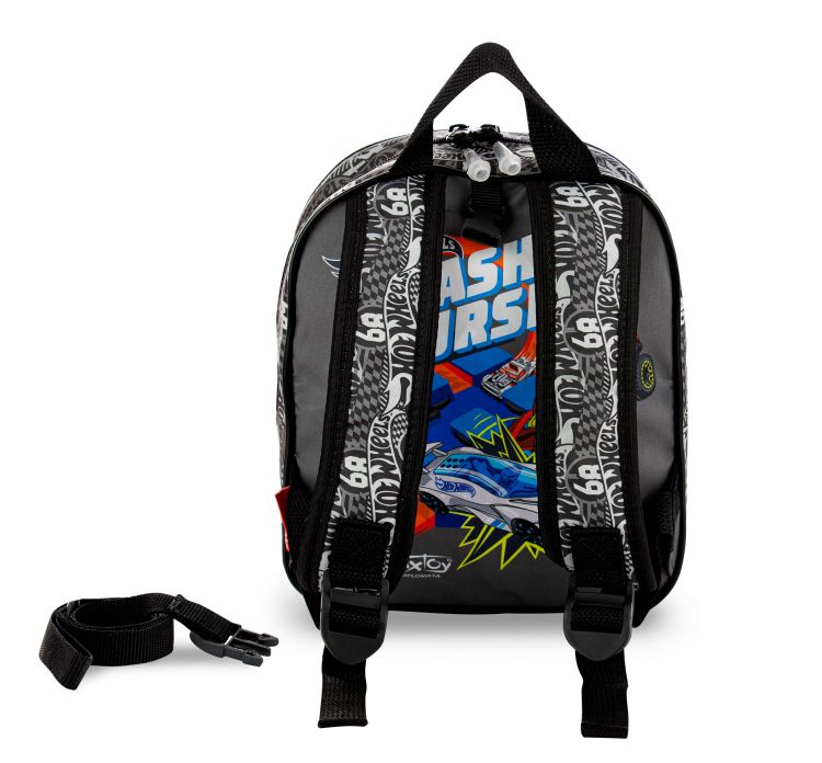 Mochila Infantil Hotwheels Pista Preto Maxtoy Diplomata com Alça de Costas